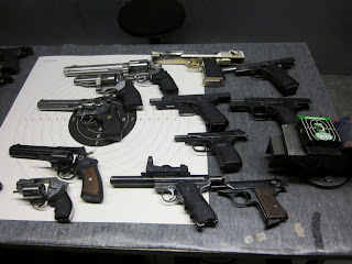 Ammuin lähes koko asevalikoimalla, ottaen jokaisella kierroksella eri aseen. Tuli kokeiltua kaikenlaista 9mm pistooleista tuohon aiemmin mainittuun .44 Magnumiin. Mukana oli myös pieni noir-leffoista tuttu tyttörevolveri. Omiin suosikkeihin jäi pysyvästi Jericho 941 pistooli, joka jostain syystä sopi omaan käteeni parhaiten ja sen huomasi selkeästi myös maalitaulusta. Tyttörevolveri oli todella ikävä ampua, koska siitä oli jopa minun pienellä kädelläni vaikeaa saada kunnollisen tuntuista otetta.