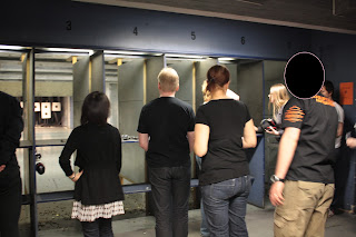 Perehdytyksen aikana radat oli valmisteltu meitä varten. Ensimmäinen kierros meni hieman paniikinomaisesti räiskiessä. Jaoin radan toisen osallistujan kanssa. Meidän taulumme oli asetettu päällekkäin ja minua ohjestettiin ampumaan alempaan tauluun. Tuo ohjeistus tosin meni minulta hieman ohi korvatulppien ja kuulosuojaimien ansiosta ja aloitin ensimmäisen kierrokseni ampumalla ylempään tauluun! Kun olin ampunut viimeisen luodin, laskenut aseen alas ja hengähtänyt, tajusin että nyt meni ihan vikaan. Pahoittelut siitä! Sen jälkeen tähtäilin kovasti omaan tauluuni, vaikkei ne osumat ihan sinne tainneet kaikki mennäkään. Tähtääminen oli minulle se vaikein osuus. Käytän silmälaseja hajataiton takia, enkä oikein osannut päättää kumpi silmä toimisi paremmin tähtäyksessä. Parin ei-niin-onnistuneen kierroksen jälkeen toinen ohjaajista neuvoi ottamaan silmälasit pois, jos se helpottaisi asiaa. Joten ammuskelin muutaman kierroksen ilman silmälaseja, mutta ei sillä oikein tuntunut olevan vaikutusta. Kunnes viimeiselle kierrokselle laitoin rillit takaisin päähän ja johan osui paremmin.