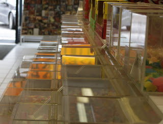 Muistaako kukaan, milloin videovuokraamoihin tulivat hervottomat irtokarkkivalikoimat? Joskus omassa lapsuudessani 90-luvulla oli Karkkipussi-makeisliike erikseen ja sen ehkä yhden kerran kun vanhempien kanssa videovuokraamossa kävin, siellä oli kyllä muistaakseni jo irtokarkkeja mutta noin suhteessta 1:10 videoihin nähden. Nythän makuunit ja filmtownit taitavat pärjätä aika pitkälle nimenomaan karkkimyynnillään.