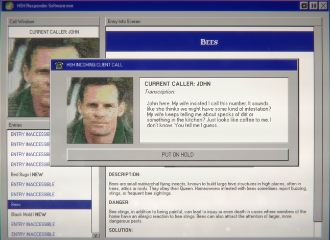 On vuosi 1996, ja olet juuri saanut työpaikan Home Safety Hotline -nimisessä yrityksessä. Yritys tarjoaa soittajilleen ohjeistusta ja tukea erilaisissa kodin ongelmatilanteissa, erityisesti kaikenlaisiin tunkeilijoihin ja tuholaisiin liittyen. Et kuitenkaan ehkä työhön lupautuessasi ymmärtänyt, että tuholaisia on todellakin KAIKENLAISIA.